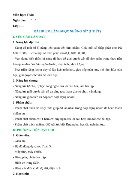 Giáo án Bài 38: Em làm được những gì? Toán lớp 5 Chân trời sáng tạo