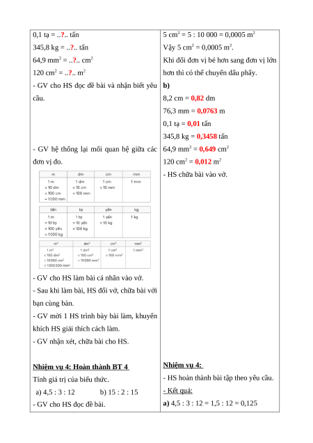 liên quan đến đổi đơn vị đo độ dài, diện tích, khối lượng.