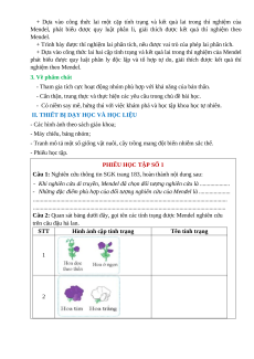 phát biểu được quy luật phân ly độc lập và tổ hợp tự do, giải thích được kết quả thí nghiệm theo Mendel. 3. Về phẩm chất