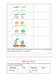 Câu 2: Quan sát bảng dưới đây, gọi tên các tính trạng được Mendel nghiên cứu trên câu đậu hà lan. STT