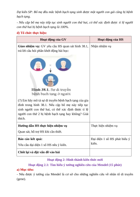 Giáo án Bài 38 KHTN 9 Cánh diều (2024): Quy luật di truyền của Mendel
