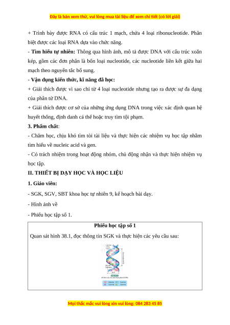 Giáo án Bài 38 KHTN 9 Kết nối tri thức (2024): Nucleic acid và gene