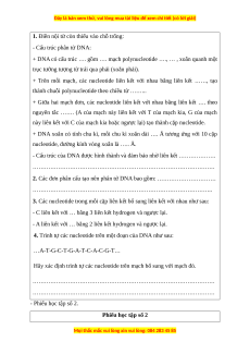 1. Điền nội từ còn thiếu vào chỗ trống: - Cấu trúc phân tử DNA: