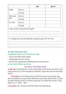 + Trình bày được cơ chế xác định giới tính. Nêu được một số yếu tố ảnh hưởng đến sự phân hóa giới tính. 3. Về phẩm chất