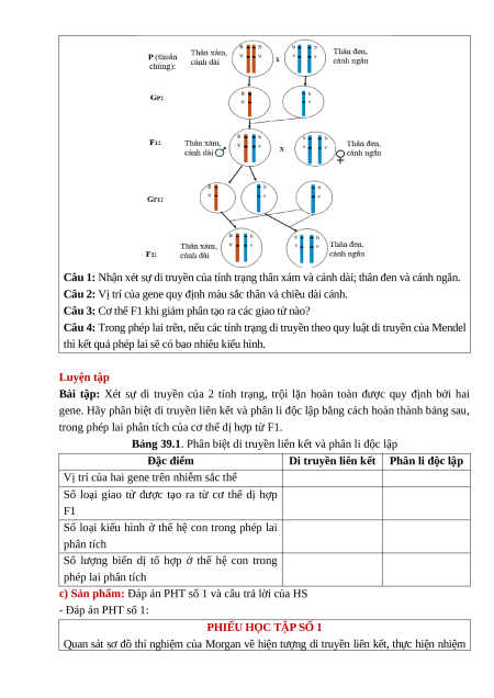 Câu 1: Nhận xét sự di truyền của tính trạng thân xám và cánh dài; thân đen và cánh ngắn.