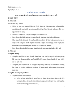 - Các video về quá trình tái bản, phiên mã và dịch mã. - Phiếu học tập.