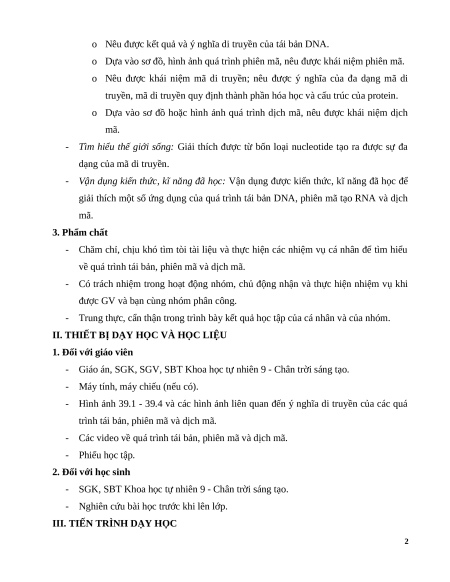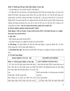 giải thích một số ứng dụng của quá trình tái bản DNA, phiên mã tạo RNA và dịch mã. 3. Phẩm chất
