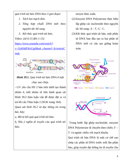 Giáo án Bài 39 KHTN 9 Chân trời sáng tạo (2024): Quá trình tái bản, phiên mã và dịch mã