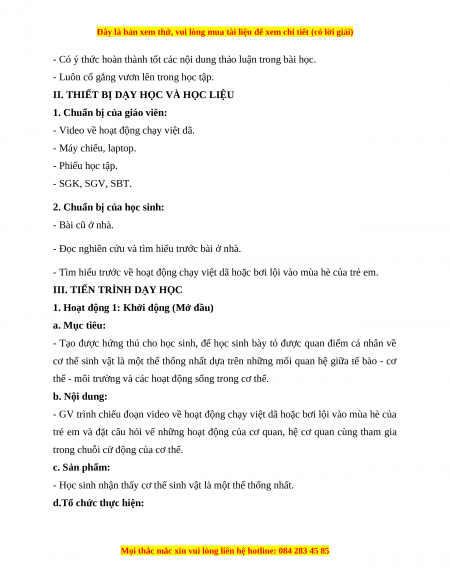 - Học sinh nhận thấy cơ thể sinh vật là một thể thống nhất.