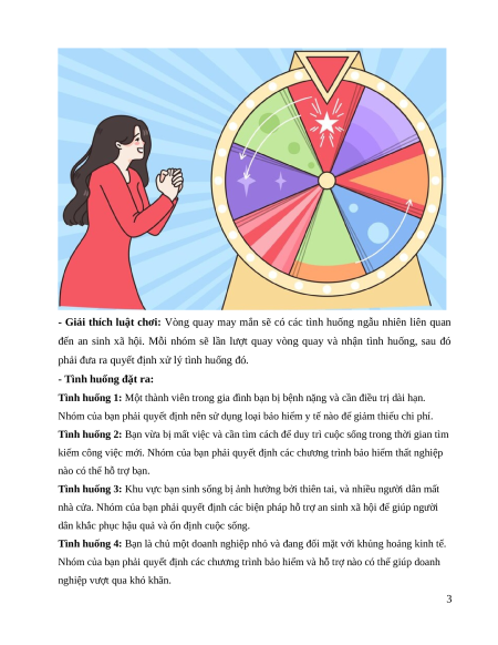 - Mỗi nhóm lần lượt quay vòng quay và nhận tình huống an sinh xã hội ngẫu nhiên.