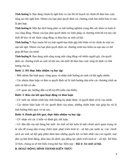 - Các nhóm thảo luận và đưa ra quyết định xử lý tình huống dựa trên các chương trình an sinh xã hội có sẵn.