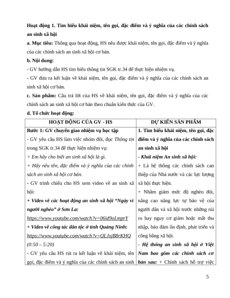 - GV dẫn dắt vào nội dung bài mới: An sinh xã hội luôn là một chính sách quan trọng và