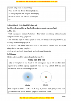 Câu 1: Trong lịch sử các thuyết về mô hình nguyên tử, có mô hình hành tinh