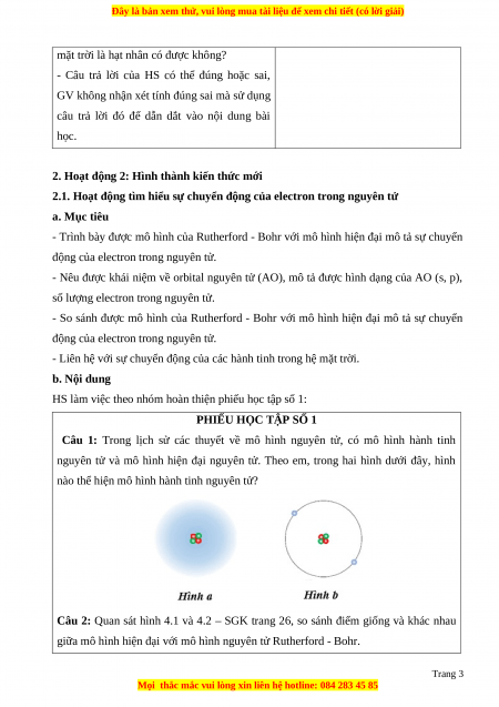 2.1. Hoạt động tìm hiểu sự chuyển động của electron trong nguyên tử a. Mục tiêu