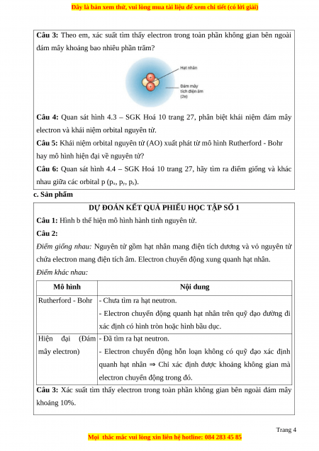 Câu 3: Xác suất tìm thấy electron trong toàn phần không gian bên ngoài đám mây khoảng 10%. Trang 4