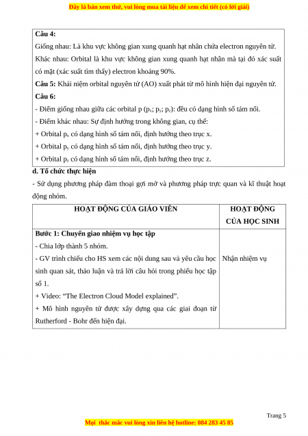 Câu 5: Khái niệm orbital nguyên tử (AO) xuất phát từ mô hình hiện đại nguyên tử.