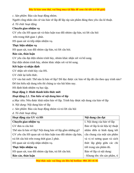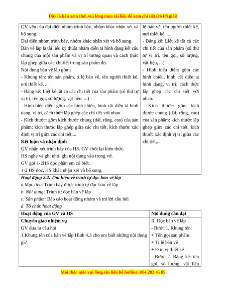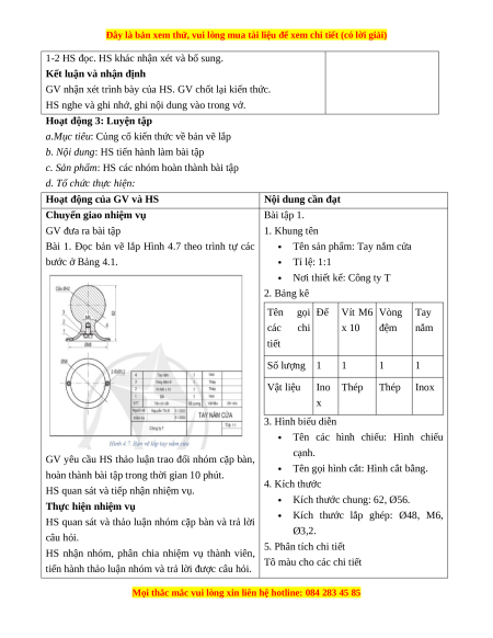 - Giao tiếp công nghệ: Đọc được bản vẽ bản vẽ lắp