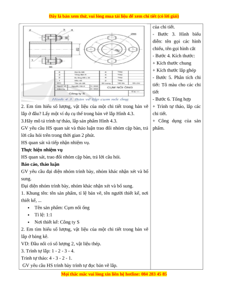 2. Em tìm hiểu số lượng, vật liệu của một chi tiết trong bản vẽ + Trình tự tháo, lắp các