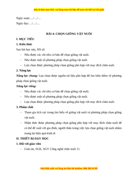 - Giáo án, SGK, SGV Công nghệ chăn nuôi 11.
