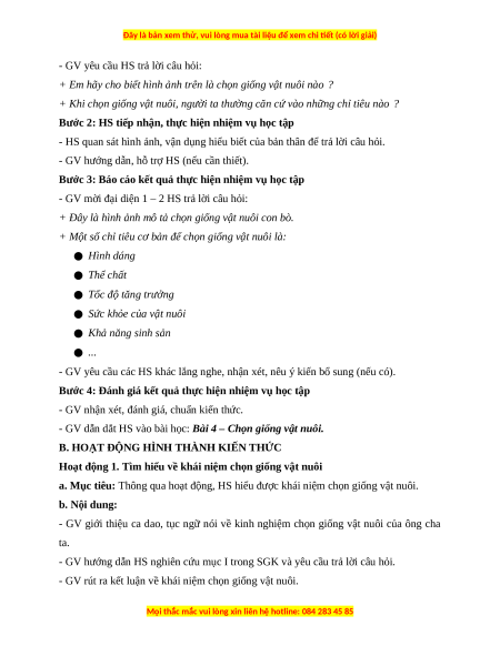 Giáo án Bài 4 Công nghệ chăn nuôi 11 Kết nối tri thức: Chọn giống vật nuôi