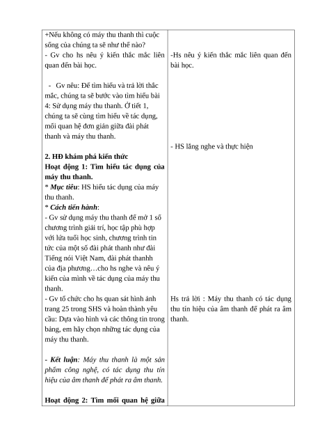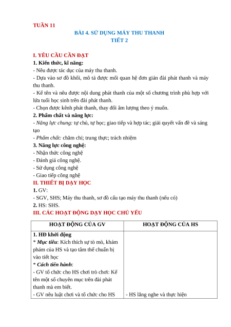 4: Sử dụng máy thu thanh. Ở tiết 1,