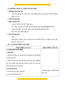 II. PHƯƠNG PHÁP VÀ THI T Ế BỊ DẠY H C Ọ 1. Phư ng ơ pháp d y ạ h c ọ - Vấn đáp, đ n ộ g não, tr c ự quan, ho t ạ đ n ộ g nhóm, gi i ả quy t ế v n ấ đ , ề l n ắ g nghe tích c c. ự 2. Thi t ế b ị d y ạ h c ọ a. Đ i ố v i ớ giáo viên