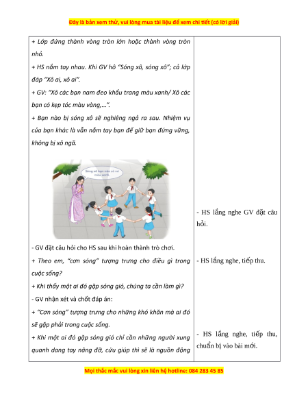 + HS nắm tay nhau. Khi GV hô “Sóng xô, sóng xô”; cả lớp