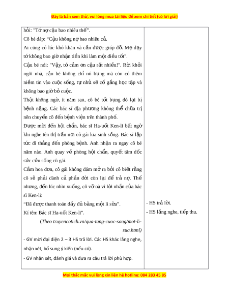- GV yêu cầu HS đọc câu chuyện Một li sữa và trả lời câu hỏi: MỘT LI SỮA M t ộ ngày mùa đông l n ạ h giá, có c u ậ bé nghèo tên Ken-li gõ c a ử h t ế nhà này đ n