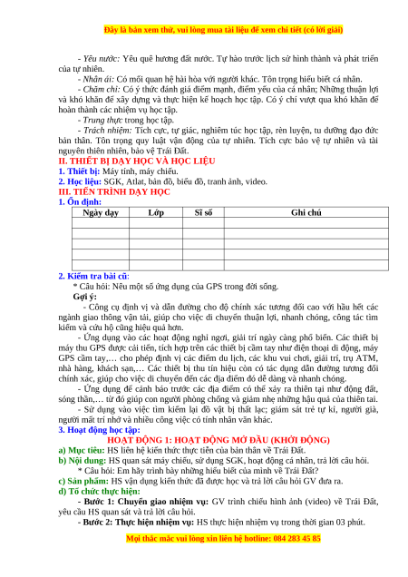 - Bước 1: Chuyển giao nhiệm vụ: GV trình chiếu hình ảnh (video) về Trái Đất,