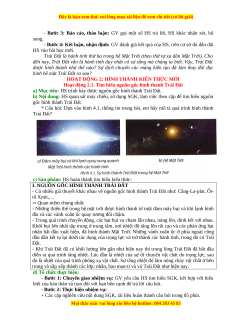 - Trình bày được nguồn gốc hình thành Trái Đất, đặc điểm của vỏ Trái Đất, các vật