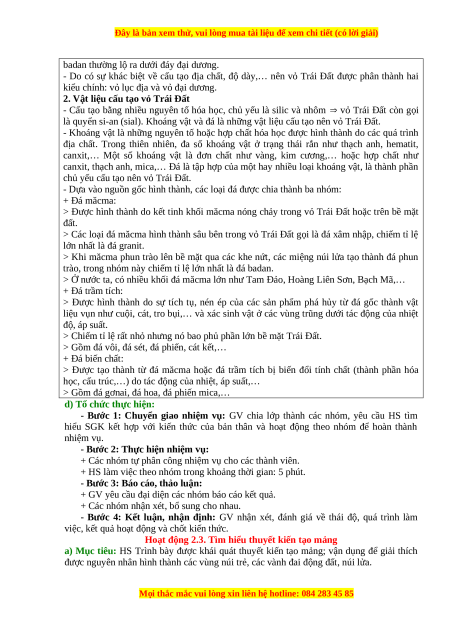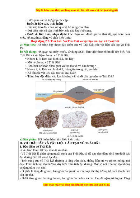 a) Mục tiêu: HS trình bày được đặc điểm của vỏ Trái Đất, các vật liệu cấu tạo vỏ Trái
