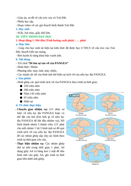 địa PANGEA để bắt đầu nhiệm vụ). HS