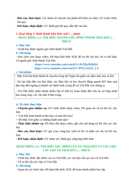 - Đoạn video về các giả thuyết hình thành Trái Đất. 2. Học sinh