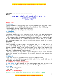 Bài 4: MỘT SỐ TỔ CHỨC QUỐC TẾ VÀ KHU VỰC, AN NINH TOÀN CẦU (Số tiết: 2 tiết) I. MỤC TIÊU 1. Kiến thức