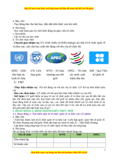 hiện nay; xây dựng được bảng so sánh các tổ chức quốc tế và khu vực theo các tiêu chí