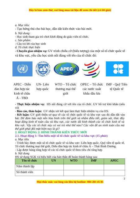 2.1. Hoạt động 1: Tìm hiểu một số tổ chức quốc tế và khu vực (15 phút) a. Mục tiêu