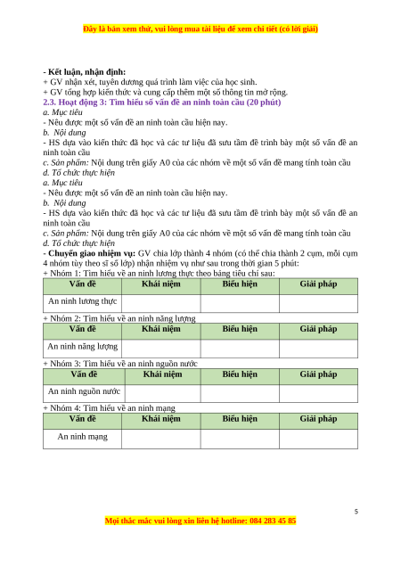 2.3. Hoạt động 3: Tìm hiểu số vấn đề an ninh toàn cầu (20 phút)