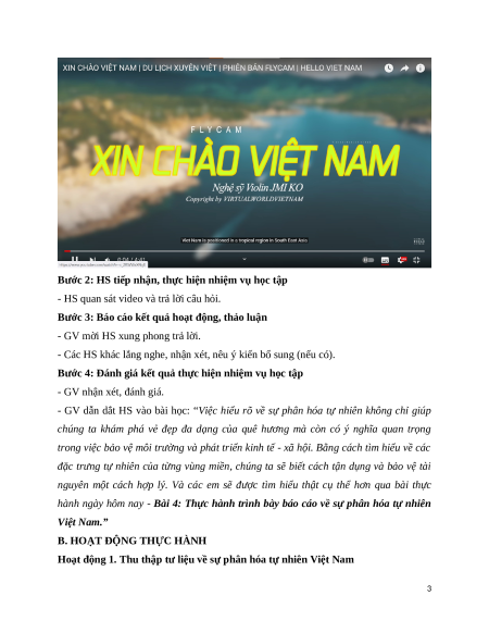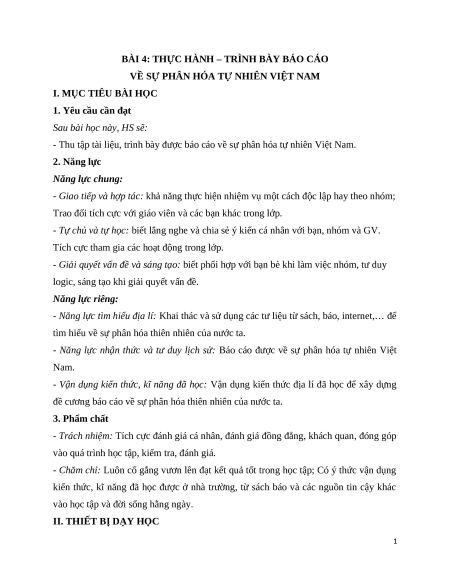 hành ngày hôm nay - Bài 4: Thực hành trình bày báo cáo về sự phân hóa tự nhiên Việt Nam.”