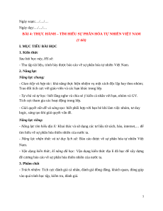 BÀI 4: THỰC HÀNH – TÌM HIỂU SỰ PHÂN HÓA TỰ NHIÊN VIỆT NAM (1 tiết)