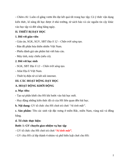 Bộ giáo án Địa lí 12 Chân trời sáng tạo đã cập nhật đủ Cả năm.