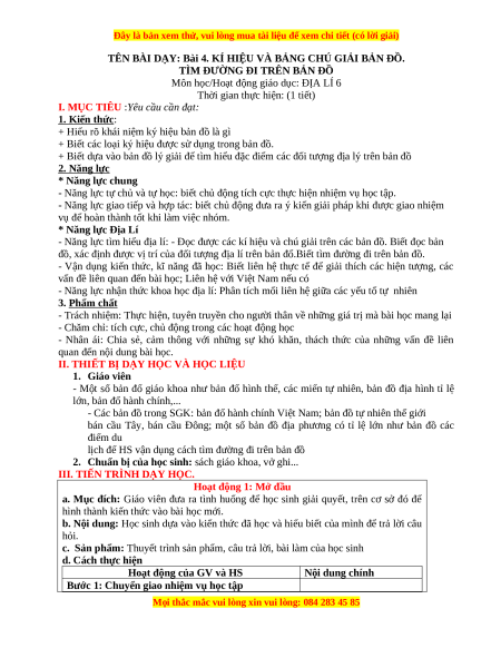 Môn học/Hoạt động giáo dục: ĐỊA LÍ 6