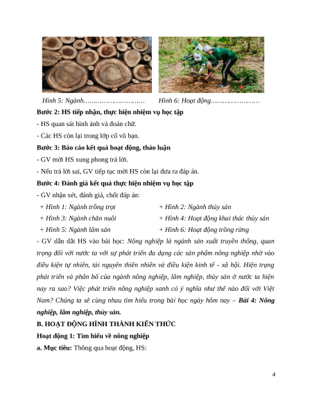 Giáo án Bài 4 Địa lí 9 Chân trời sáng tạo (2024): Nông nghiệp, lâm nghiệp, thuỷ sản