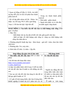 ợ mở / video, khai thác kênh chữ SGK. 3. Phư ng ơ ti n: ệ Tivi, máy tính… 4. Hình th c t ứ ổ ch c ứ : Cá nhân - C p ặ đôi. Hoạt đ ng c ộ a gi u áo viên & h c ọ sinh N i ộ dung chinh * Tìm hi u ể v n ấ đề vi c