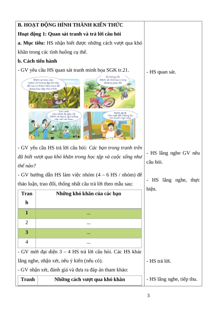 sống. Chúng ta cùng vào bài học “Em vượt qua khó khăn