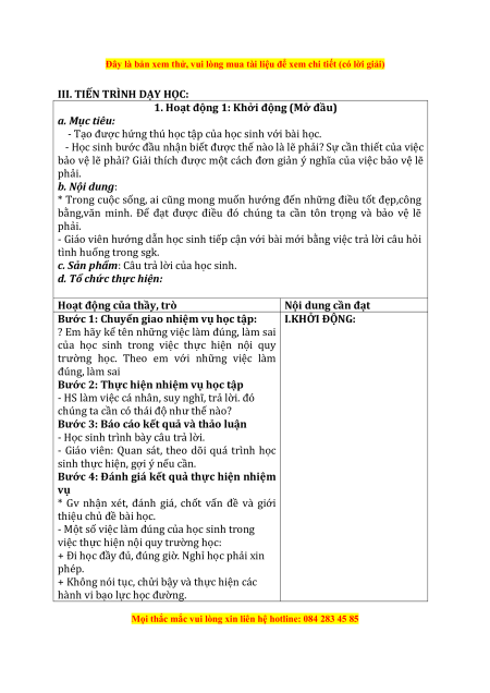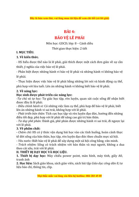 Đây là bản xem thử, vui lòng mua tài liệu để xem chi tiết (có lời giải) BÀI 4: BẢO VỆ LẼ PHẢI