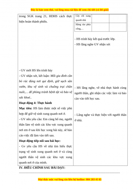 * Năng lực riêng: Có ý thức giữ vệ sinh xung quanh nhà và biết cách vệ sinh