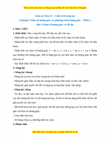 Bài 4. Hàm số lượng giác và đồ thị I. MỤC TIÊU