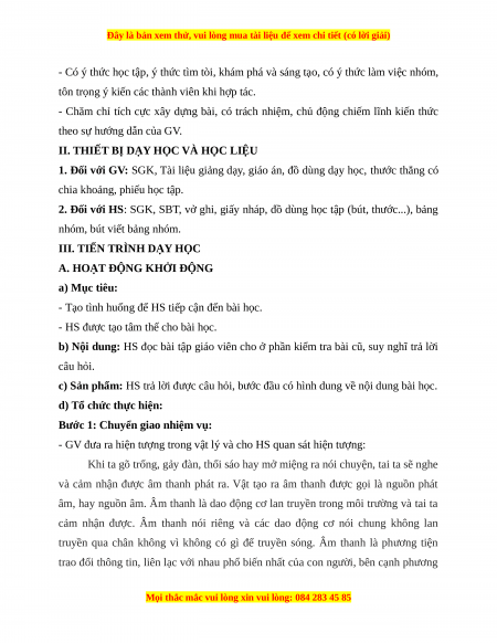 II. THIẾT BỊ DẠY HỌC VÀ HỌC LIỆU