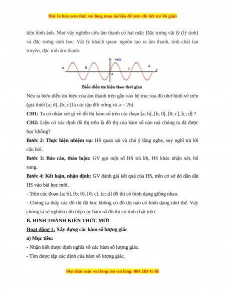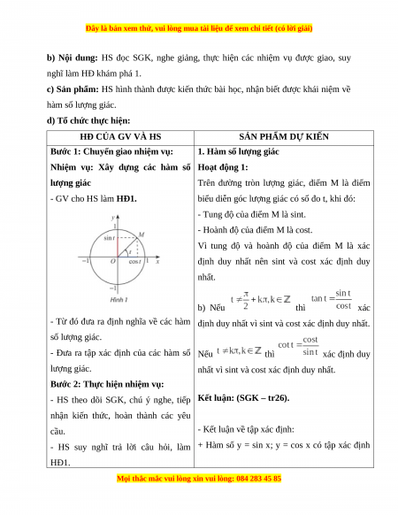 Hoạt động 1: Xây dựng các hàm số lượng giác a) Mục tiêu: