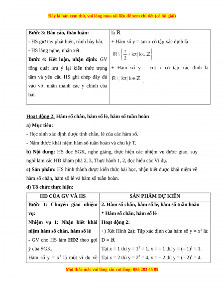 Hoạt động 2: Hàm số chẵn, hàm số lẻ, hàm số tuần hoàn